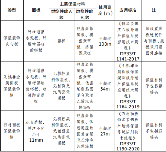 浙江省下發(fā)公文將保溫裝飾一體板歸類劃分制定標(biāo)準(zhǔn),將保溫裝飾一體板劃分為五個大類,保溫裝飾夾芯板(巖棉類需要用到背板的材料)、無機非金屬保溫裝飾板、金屬飾面保溫裝飾板、石材飾面保溫裝飾板、有釉面發(fā)泡陶瓷保溫裝飾板。