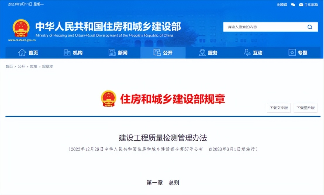 2022年12月29日中華人民共和國住房和城鄉(xiāng)建設(shè)部令第57號公布《建設(shè)工程質(zhì)量檢測管理辦法》,自2023年3月1日起正式施行。
