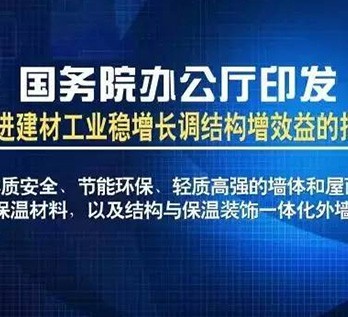 國務(wù)院辦公廳印發(fā)《關(guān)于促進(jìn)建材工業(yè)穩(wěn)增長調(diào)結(jié)構(gòu)增效益的指導(dǎo)意見》中,明確指出“發(fā)展本質(zhì)安全、節(jié)能環(huán)保、輕質(zhì)高強(qiáng)的墻體和屋面材料、 外墻保溫材料,以及結(jié)構(gòu)與保溫裝飾一體化外墻板”。